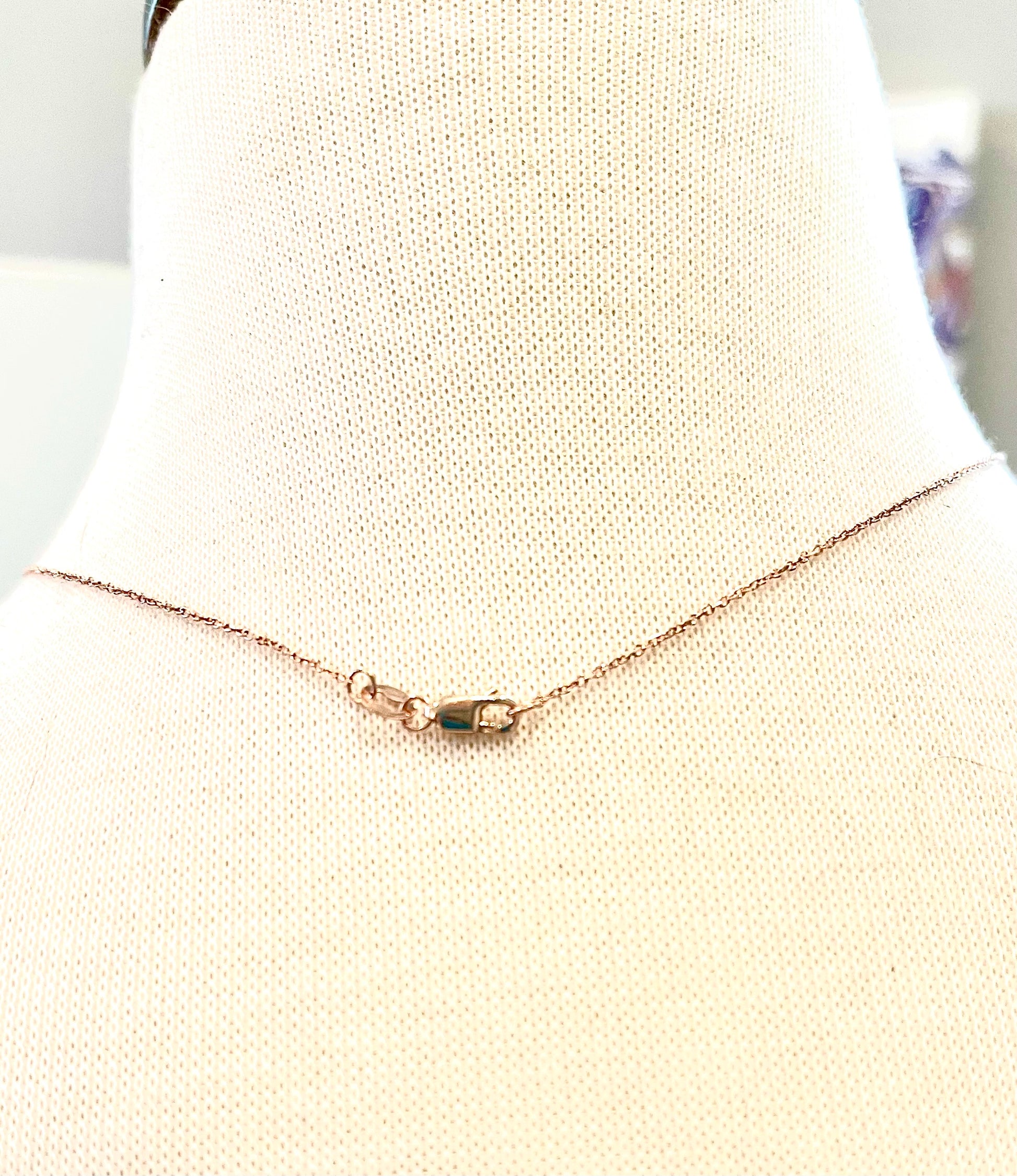 This 10k gold necklace is 18" in length, featuring a diamond cut cable chain that is 1mm wide and a pendant measuring 7mm by 9mm. A secure lobster clasp ensures lasting wear, and one charm is included in this listing, with images illustrating two for visual reference.