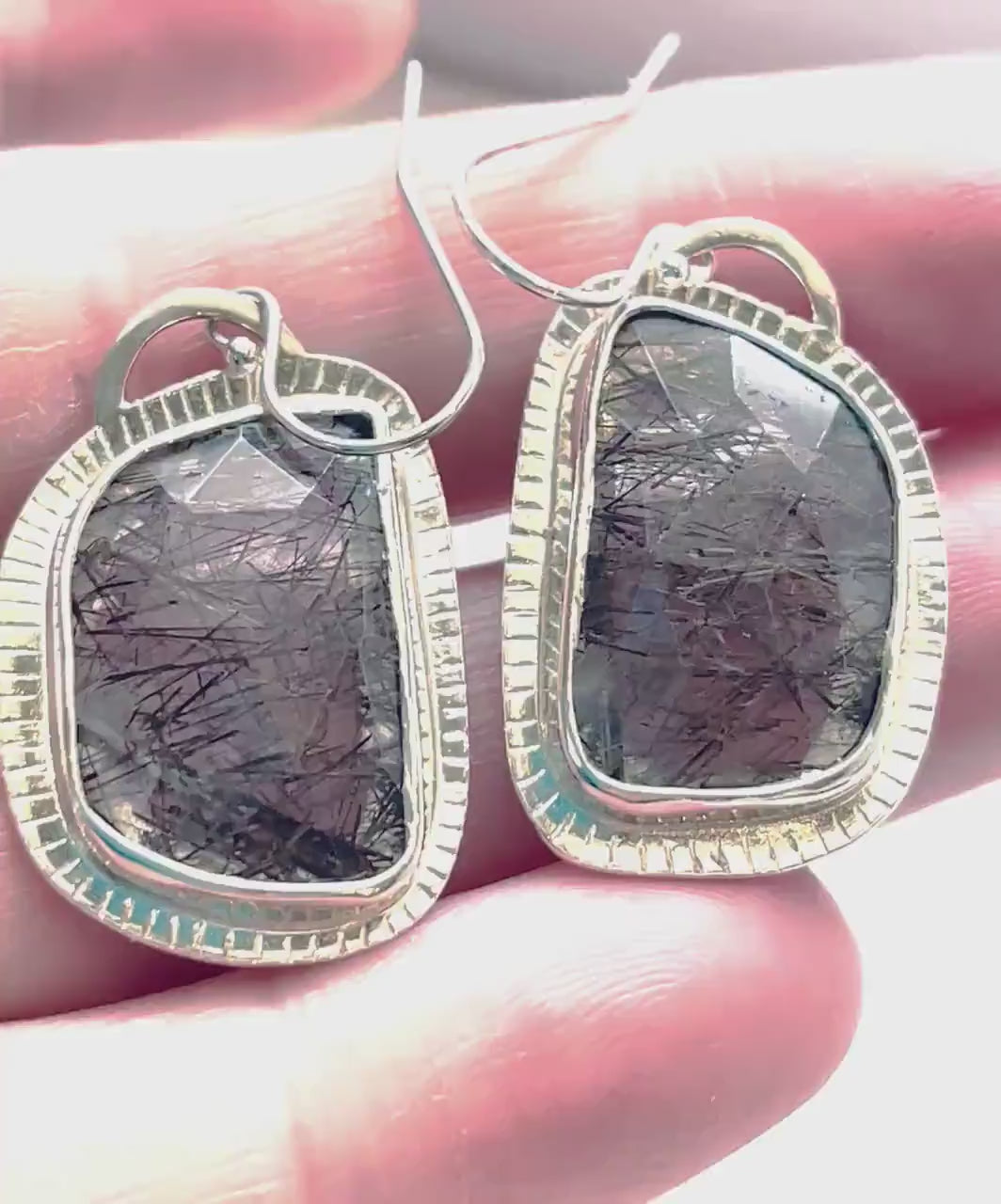 Big Silver Earrings For Sale Large Gemstone Black Rutile Quartz Earrings Sterling Silver Tourmalinated Quartz Drop Earrings Handmade Gift