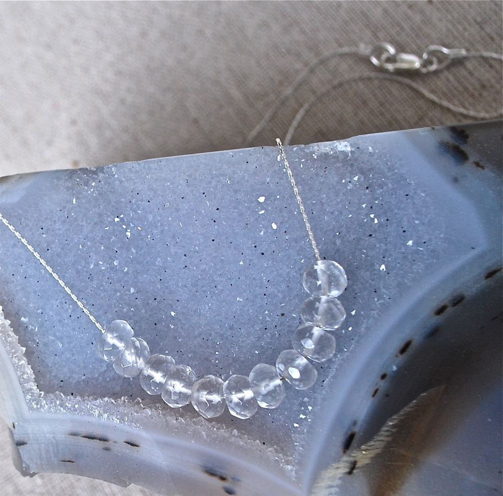 Sarah Jessica Parker elegantly wore a beautiful version of this necklace to symbolize her March birthday, aquamarine. My version has 11 faceted, clear, rock crystal quartz rondelles on sterling silver velvety foxtail chain for all you beautiful April babies!
