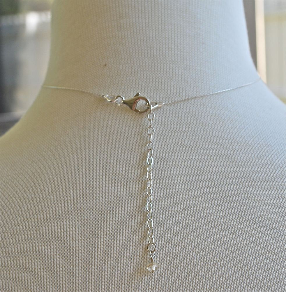 The necklace is 16 inches long and is finished with a sterling silver lobster clasp.