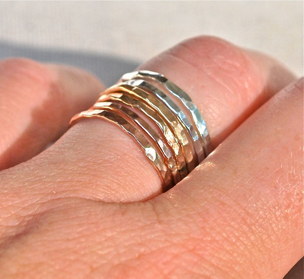 Choose as many stack rings as you wish. These handmade bands are hammer faceted leaving a sparkly finish. I use only 14kt gold filled material and 14kt solder to make high quality affordable rings that will give you many, many years of use.