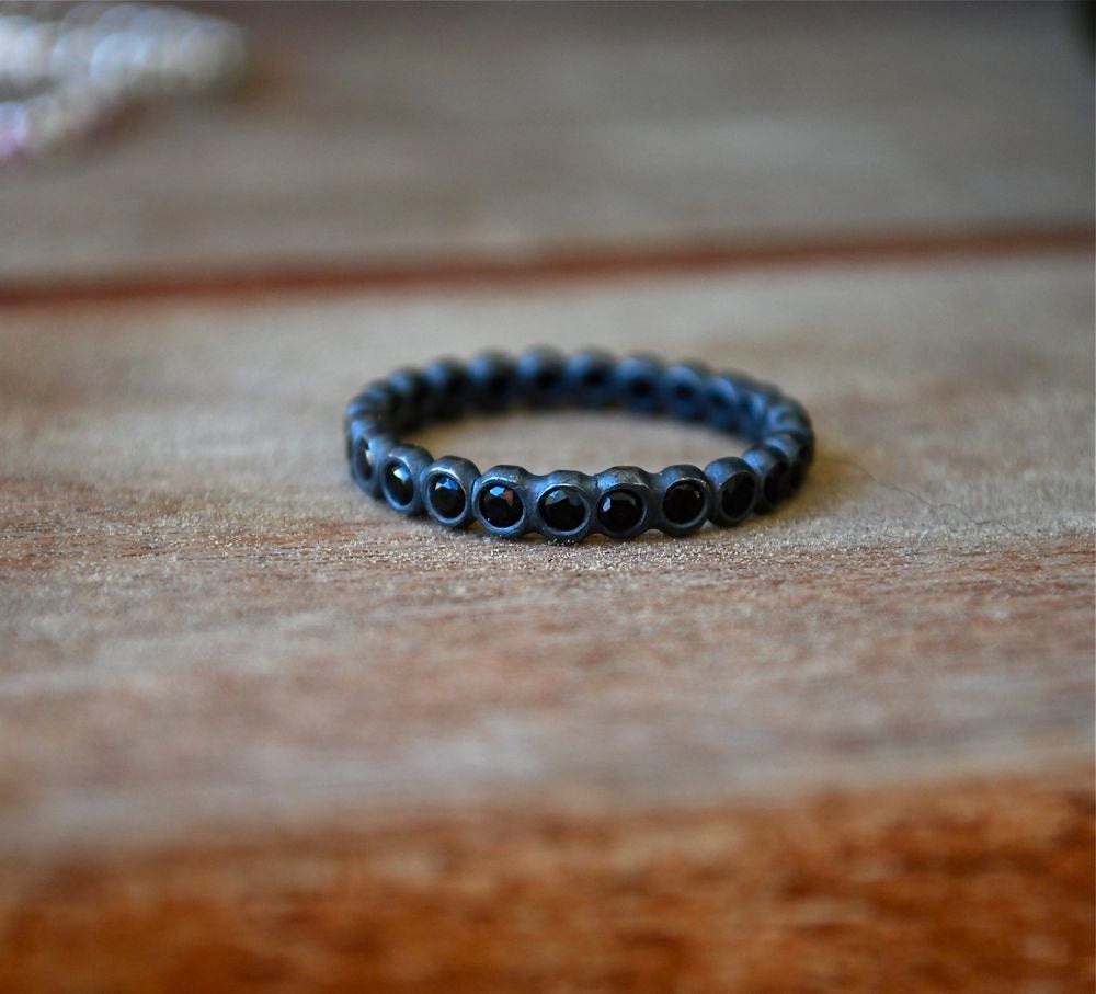 Stacking Ring - Wedding Stackable Ring - Gemstone Birthstone Ring - Black Spinel Eternity Stacking Ring in Oxidized Recycled Sterling Silver
